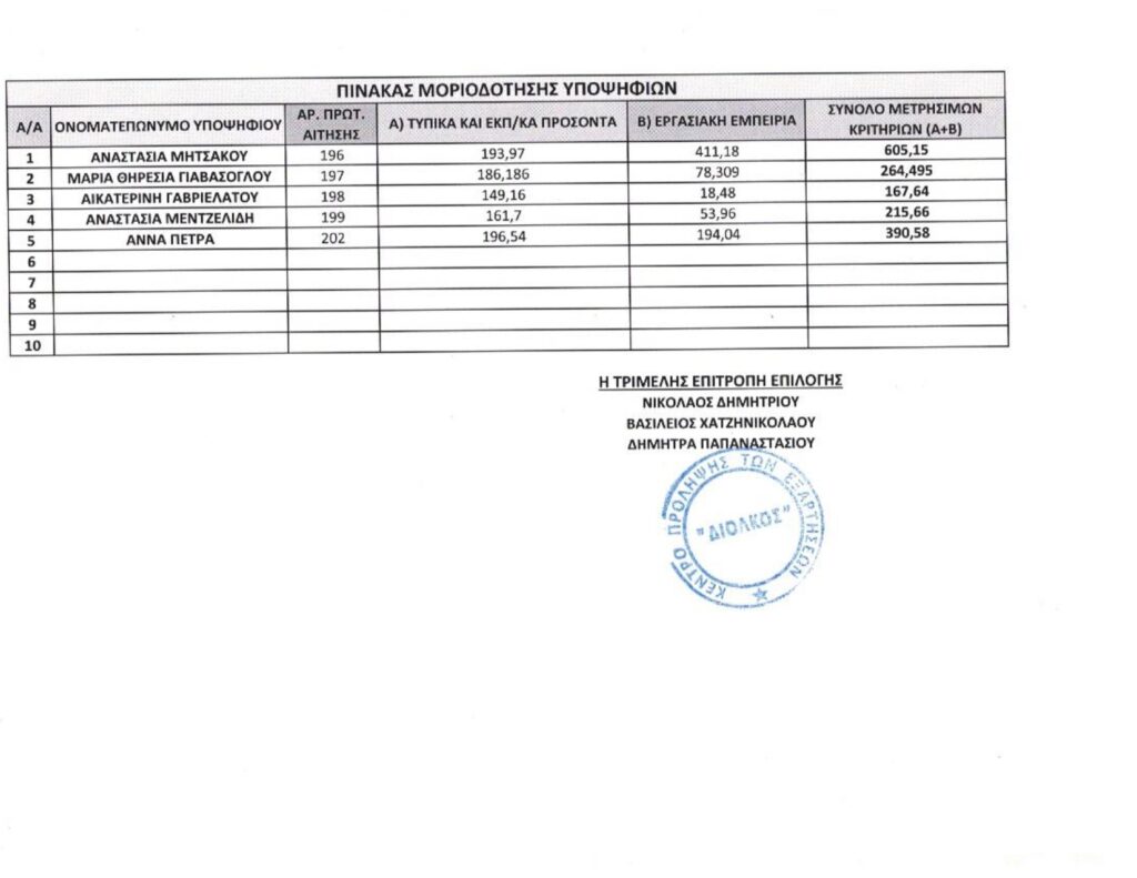 ΑΝΑΚΟΙΝΩΣΗ ΠΙΝΑΚΑ ΜΟΡΙΟΔΟΤΗΣΗΣ ΥΠΟΨΗΦΙΩΝ ΠΕ ΨΥΧΟΛΟΓΩΝ